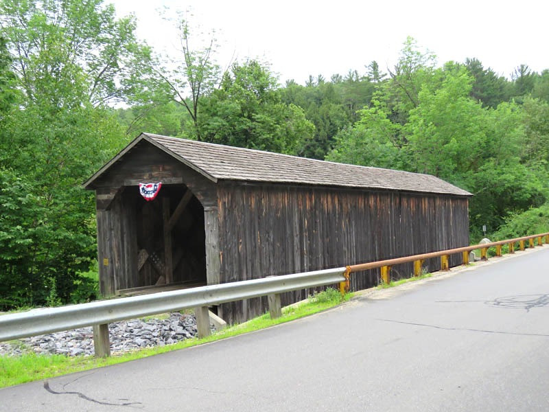 Sandford Granger owned a sawmill on Fall Mountain Brook from 1838 until 1851. Virgin timber removed from the mountain was used in the construction of his bridges. The current structure was built by his son, Albert S. Granger. In 1961, an estimate of $7,000 was given to the town for the restoration of the bridge. The town was to pay $2,100, and the state $4,900. However, the town decided to establish a sinking fund to pay for building a modern bridge, which was built downstream in 1964 under the Town Bridge Aid Program. The covered bridge was closed to vehicular traffic and retained for historic reasons.
