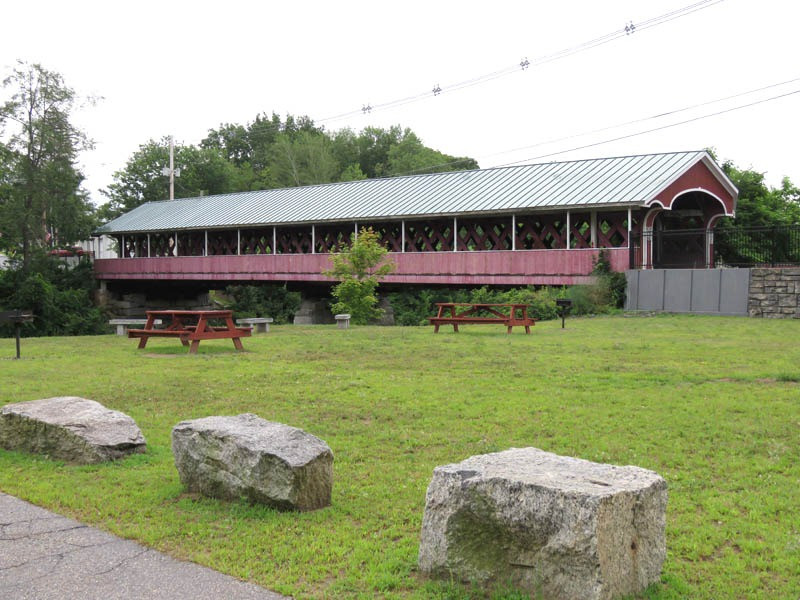 Unusual for surviving covered bridges, the bridge occupies a central location in the village of West Swanzey, and was originally equipped with two sidewalks (it now has only one). In 1973, the bridge was posted with a six-ton limit, requiring school buses to empty before they could cross the bridge and then reboard on the other side. In 1976, a new concrete and steel bridge was built nearby to carry heavy vehicles. This new bridge cost $376,914.61. The bridge has been closed to vehicular traffic since the fall of 1990 after a report by state inspectors indicated the bridge was unsafe.