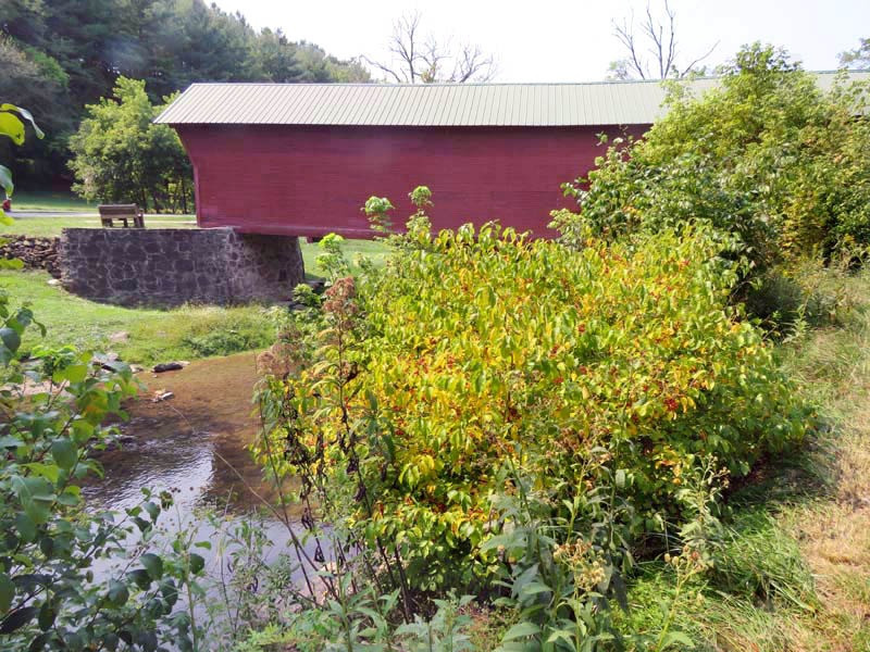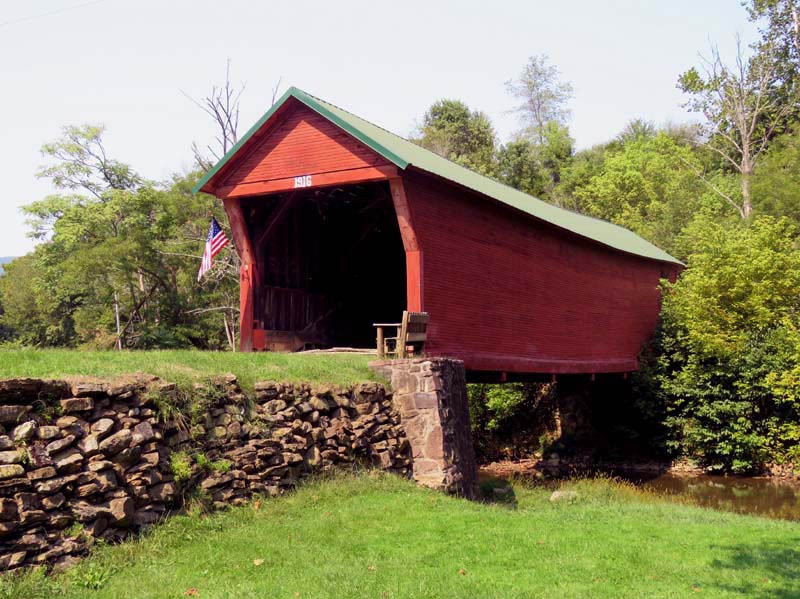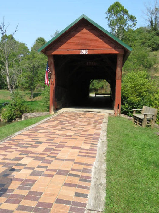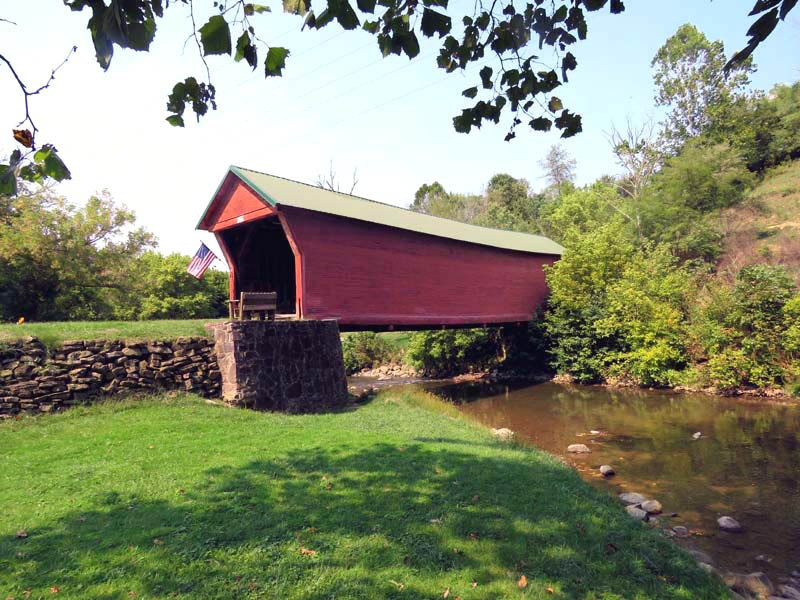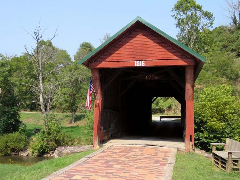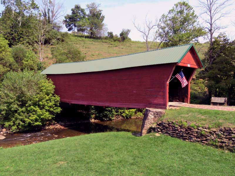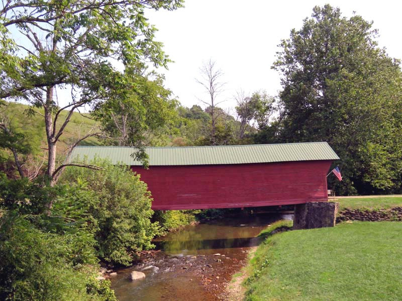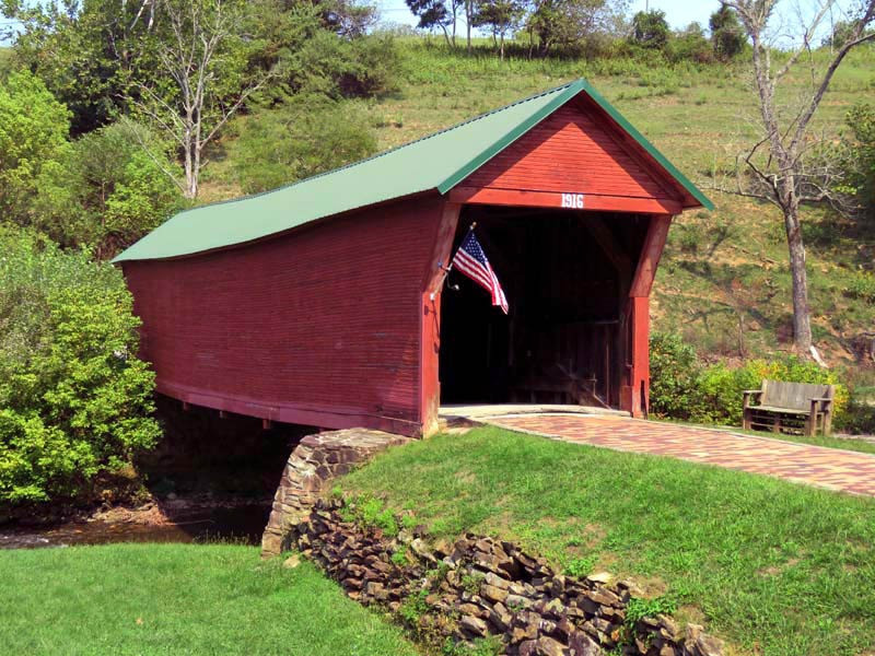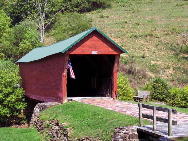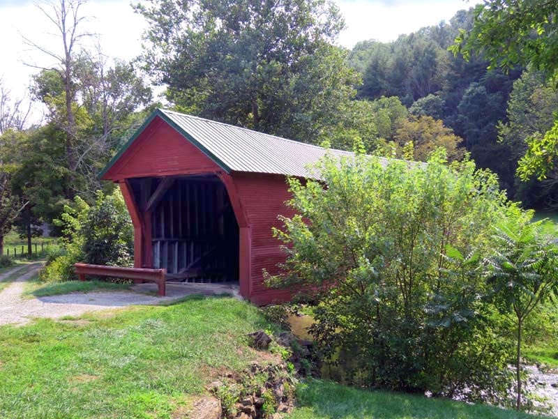 The 1916 Clover Hollow, also known as the Sinking Creek Covered Bridge, is in Giles County, Virginia. Clover Hollow has a Queen Variant truss. This 70-foot bridge crosses over Sinking Creek in southwest Virginia. Between 1912 and 1919, four covered bridges were built across Sinking Creek in Giles County. Remarkably, three of them are still standing over a century later, though two are now on private land.
