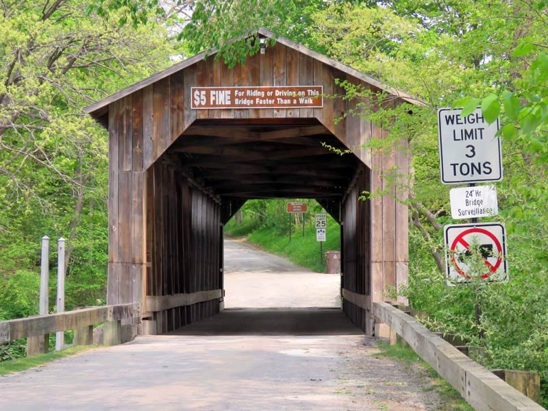 The 1840 span was destroyed by high waters and massive spring ice jams. In 1905, the bridge underwent significant repairs due to flood damage, and the original wooden abutments were replaced. In 1945, it was further reinforced with steel beams. Despite these updates, the Fallasburg Covered Bridge has a weight limit of just three tons. Again in 1994, the aging bridge was extensively repaired, but because the restoration was completed with specific attention to detail, it retained its historical integrity.