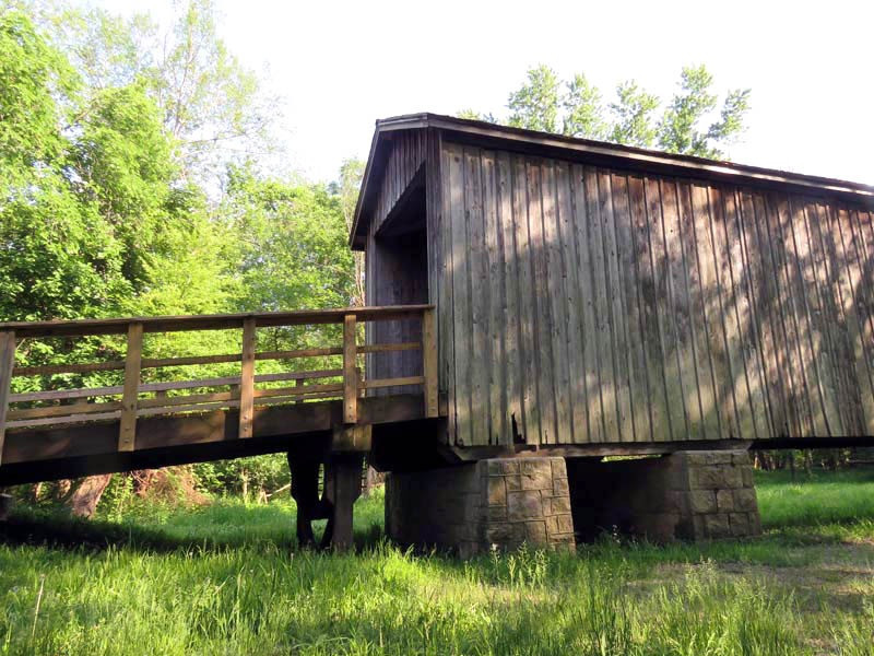 In 1968, the State of Missouri acquired the bridge and established the Locust Creek Covered Bridge State Historic Site, then repaired the bridge, replacing its roof, sheeting, and flooring. The Missouri Department of Conservation undertook another major improvement in 1991, raising the bridge by six feet to protect the wooden frame and flooring from the marshy ground, and it is now open to pedestrian traffic only.